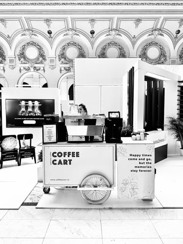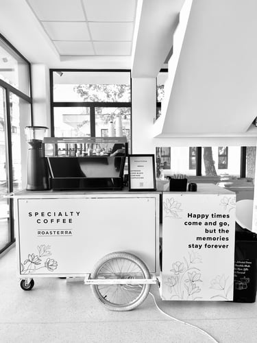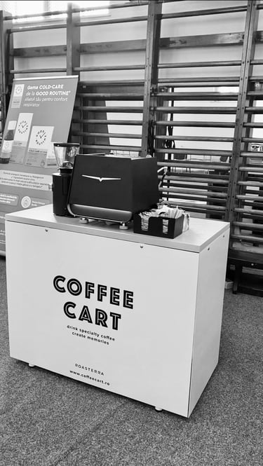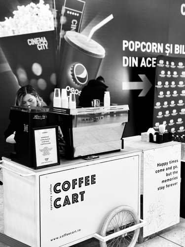 Bine ai venit la Coffee Cart, locul unde pasiunea pentru cafea de specialitate se întâlnește cu inovația! Oferim o experiență cu totul diferită, perfect adaptată evenimentelor tale speciale. Fie că organizezi o nuntă, un congres, un simpozion, un festival sau un eveniment corporate, suntem partenerul ideal pentru a impresiona invitații și a transforma fiecare pauză de cafea într-un moment memorabil.